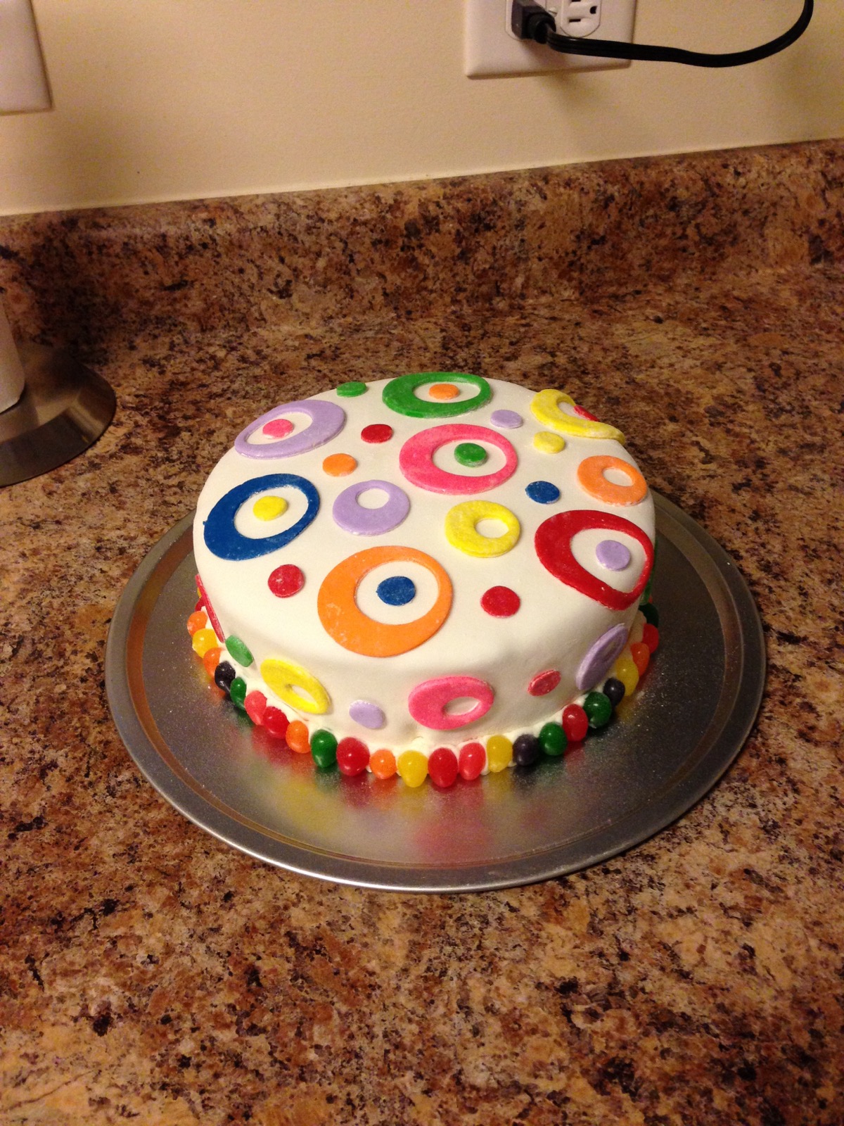 I made this cake for a friend's Birthday. The inside was yellow cake with food coloring.